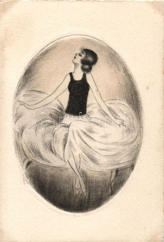 Dancing lady, etching style https://www.darabanth.com/de/143-Fernauktion/143.0/Ansichtskarten/Kunstler~900073/Dancing-lady-etching-style~II424299