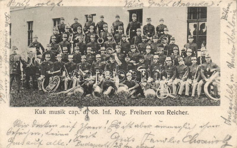 K.u.K. military band, infantry regiment no. 68 https://www.darabanth.com/de/143-Fernauktion/143.0/Ansichtskarten/Militar~900068/KuK-military-band-infantry-regiment-no-68~II424387