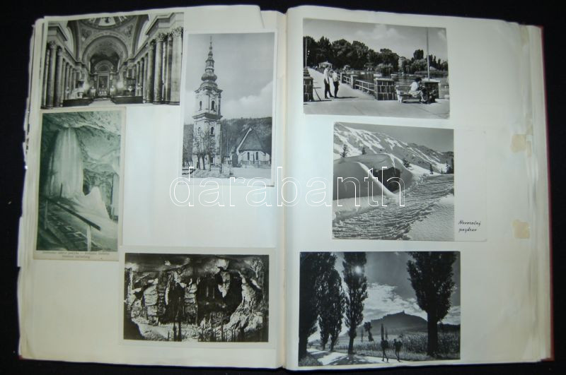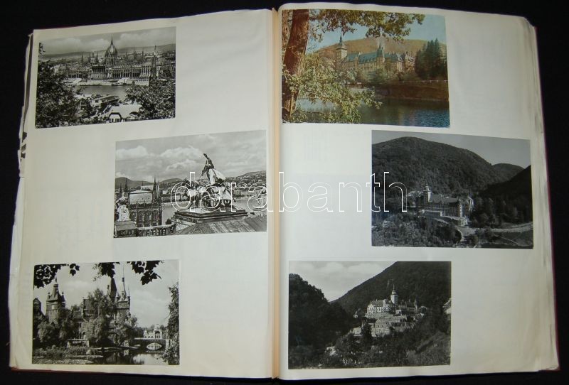Beschreibung: Nagy méretű képeslapalbum, benne vegyesen régi és modern képeslapok, sok magyar városkép és néhány leporello