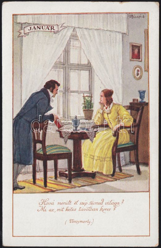 Hónapok, 12 db-os grafikai / irodalmi sorozat Biczó szignóval https://www.darabanth.com/de/143-Fernauktion/143.0/Ansichtskarten/Postkarten~900002/Honapok-12-db-os-grafikai-irodalmi-sorozat-Biczo-szignoval~II426517