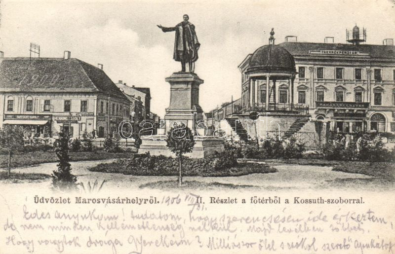 Marosvásárhely main square Kossuth statue (EB) https://www.darabanth.com/de/143-Fernauktion/143.0/Ansichtskarten/Siebenburgen~900006/Marosvasarhely-main-square-Kossuth-statue-EB~II426642