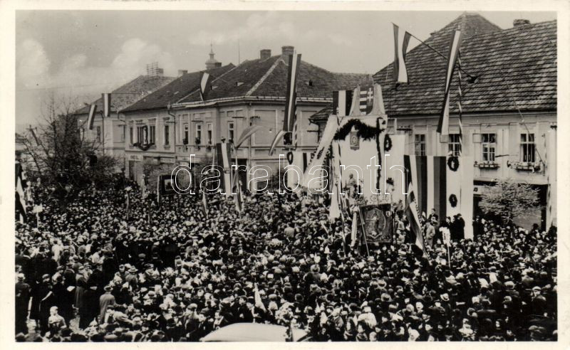 Érsekújvár entry of the Hungarian troops (cut) https://www.darabanth.com/de/143-Fernauktion/143.0/Ansichtskarten/Slowakei~900007/Ersekujvar-entry-of-the-Hungarian-troops-cut~II425651