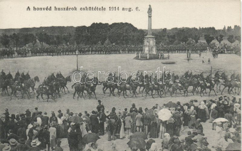 Baja honvéd huszárok eskütétele 1914. augusztus 6. https://www.darabanth.com/de/143-Fernauktion/143.0/Ansichtskarten/Ungarn~900005/Baja-honved-huszarok-eskutetele-1914-augusztus-6~II425230