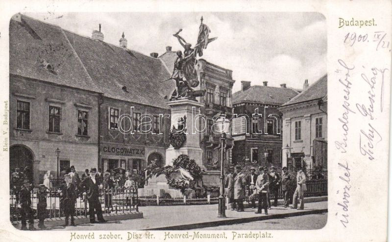 Beschreibung: Budapest I. Dísz tér, honvéd-szobor Glogowatz aranyműves üzletével (levágott / cut)