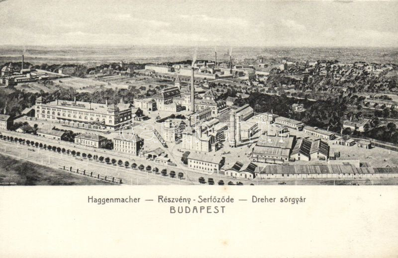 Budapest X. Haggenmacher-Dreher sörgyárak https://www.darabanth.com/de/143-Fernauktion/143.0/Ansichtskarten/Ungarn~900005/Budapest-X-Haggenmacher-Dreher-sorgyarak~II425283