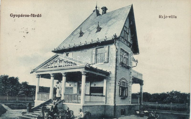 Gyopárosfürdő Rajz Villa (cut) https://www.darabanth.com/de/143-Fernauktion/143.0/Ansichtskarten/Ungarn~900005/Gyoparosfurdo-Rajz-Villa-cut~II426039