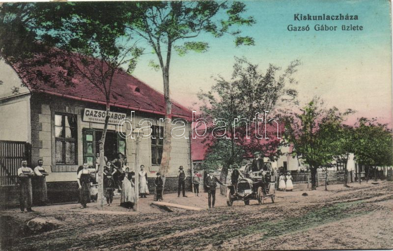 Beschreibung: Kiskunlacháza Gazsó Gábor vegyeskereskedése automobillal