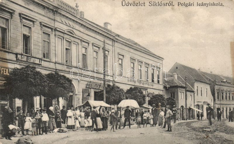 Siklós leányiskola Steinbach üzletével (EK) https://www.darabanth.com/de/143-Fernauktion/143.0/Ansichtskarten/Ungarn~900005/Siklos-leanyiskola-Steinbach-uzletevel-EK~II425442