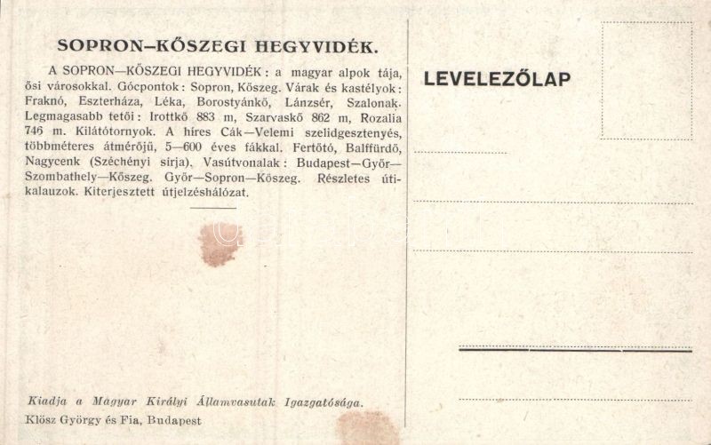 Sopron-Kőszeg Hegyvidék tourist campaign https://www.darabanth.com/de/143-Fernauktion/143.0/Ansichtskarten/Werbungen~900076/Sopron-Koszeg-Hegyvidek-tourist-campaign~II408189