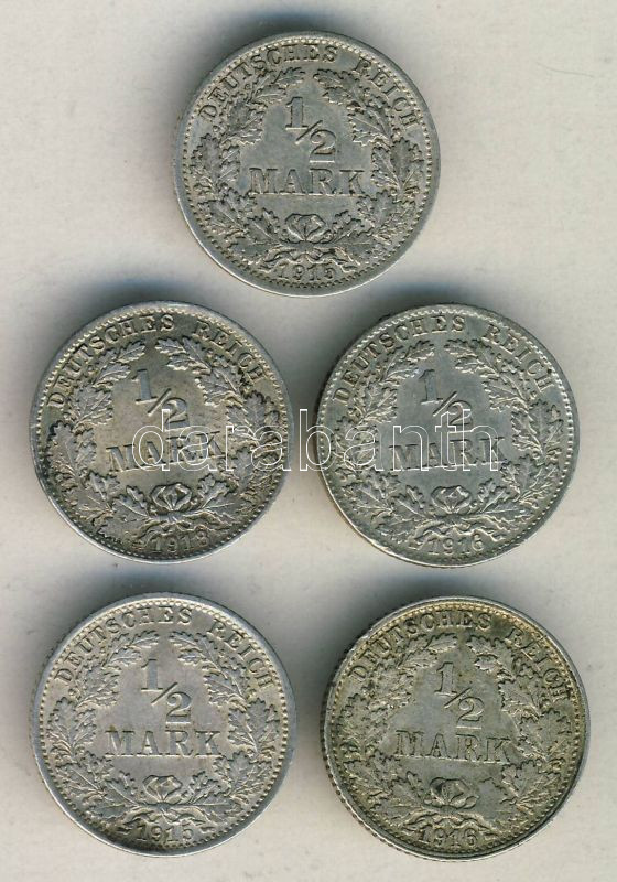 Beschreibung: Német Birodalom/Császárság 1915-1918. 1/2M Ag (5x) T:2,2-