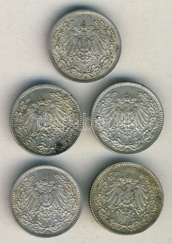 Német Birodalom/Császárság 1915-1918. 1/2M Ag (5x) T:2,2- https://www.darabanth.com/de/143-Fernauktion/143.0/Numismatik/Auslandische-Munzen~900106/Nemet-BirodalomCsaszarsag-1915-1918-12M-Ag-5x-T2-2-~II427226