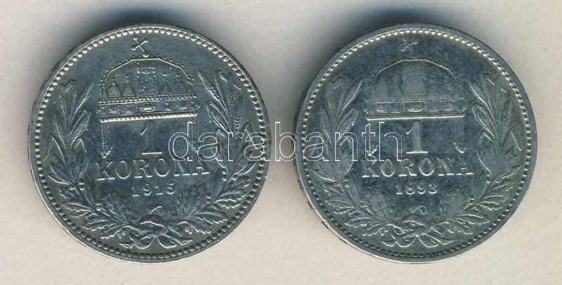 1893. 1K Ag + 1915. 1K Ag T:2,2- https://www.darabanth.com/de/143-Fernauktion/143.0/Numismatik/Ungarische-Munzen~900102/1893-1K-Ag-plus-1915-1K-Ag-T2-2-~II426611