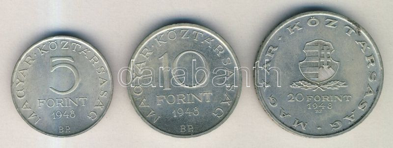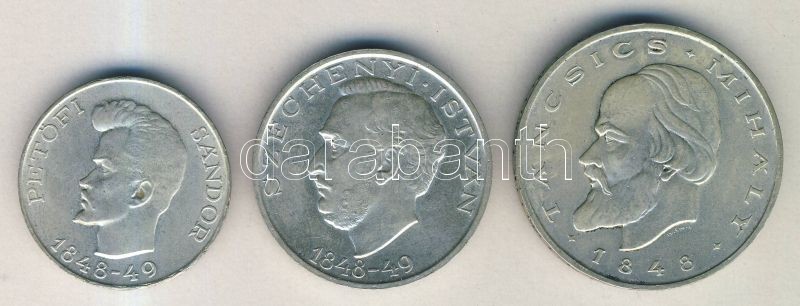 Beschreibung: 1948. 5Ft "Petőfi" + 10Ft "Széchenyi" + 20Ft "Táncsics" Ag sor T:2 ph.