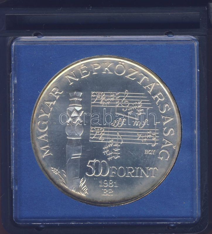 1981. 500Ft Ag "Bartók Béla" T:BU eredeti MNB plasztiktokban! https://www.darabanth.com/de/143-Fernauktion/143.0/Numismatik/Ungarische-Munzen~900102/1981-500Ft-Ag-Bartok-Bela-TBU-eredeti-MNB-plasztiktokban~II417593