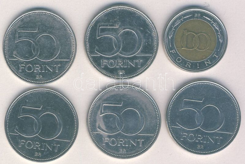 2002. 100Ft "Kossuth" + 2004-2007. 50Ft 5db klf emlékverete T:2 https://www.darabanth.com/de/143-Fernauktion/143.0/Numismatik/Ungarische-Munzen~900102/2002-100Ft-Kossuth-plus-2004-2007-50Ft-5db-klf-emlekverete-T2~II424358
