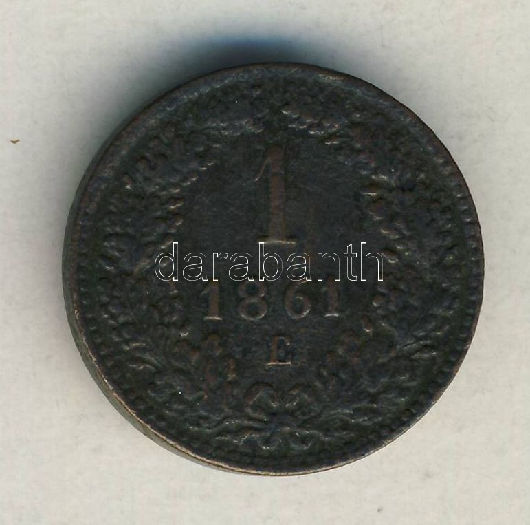 Ausztria/magyar verdejel 1861E 1Kr T:2/3 https://www.darabanth.com/de/143-Fernauktion/143.0/Numismatik/Ungarische-Munzen~900102/Ausztriamagyar-verdejel-1861E-1Kr-T23~II427239