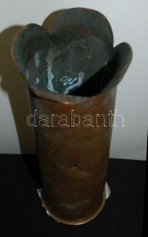1918 "Emlék a piavei harcokból..." feliratú, magyar címerrel vésett sr... https://www.darabanth.com/de/144-Fernauktion/144.0/Andere-Sammelgebiete/Flohmarkt~204/1918-Emlek-a-piavei-harcokbol-feliratu-magyar-cimerrel-vesett-srapnelbol-keszult-vaza~II431617