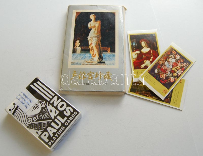 Beschreibung: Kínai művészkártyák és egy bontatlan csomag francia kártya pakli