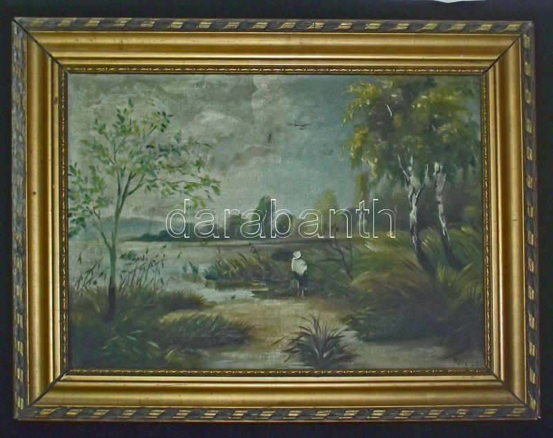 "Páli 936" jelzéssel: Tópart gólyával olaj-vászon, keretben 30x40 cm (... https://www.darabanth.com/de/144-Fernauktion/144.0/Andere-Sammelgebiete/Gemalde-und-Grafiken~178/Pali-936-jelzessel-Topart-golyaval-olaj-vaszon-keretben-30x40-cm-kis-lyuk-a-vasznon~II431482