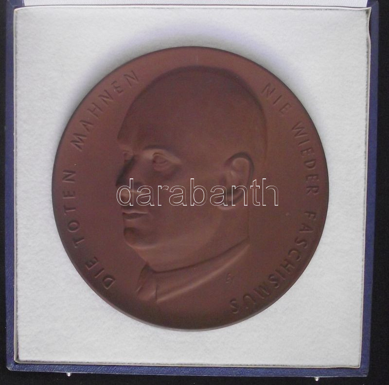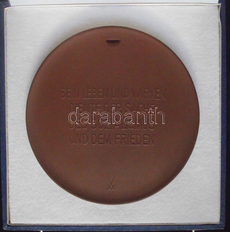 Beschreibung: NDK cca 1970 "Ernst Thälmann" extrém nagyalakú Meisseni porcelán emlékplakett (d=15cm) díszdobozban T:2+ / GDR cca1970 "Ernst Thälmann" extreme big Meissen porcelain plaquette
