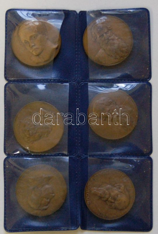 Beschreibung: Oroszország DN 6db Br emlékérem az orosz irodalom kimagasló személyiségei: Nyekraszov, Dosztojevszkij, Tolsztoj, Gogol, Puskin, Lermontov T:2