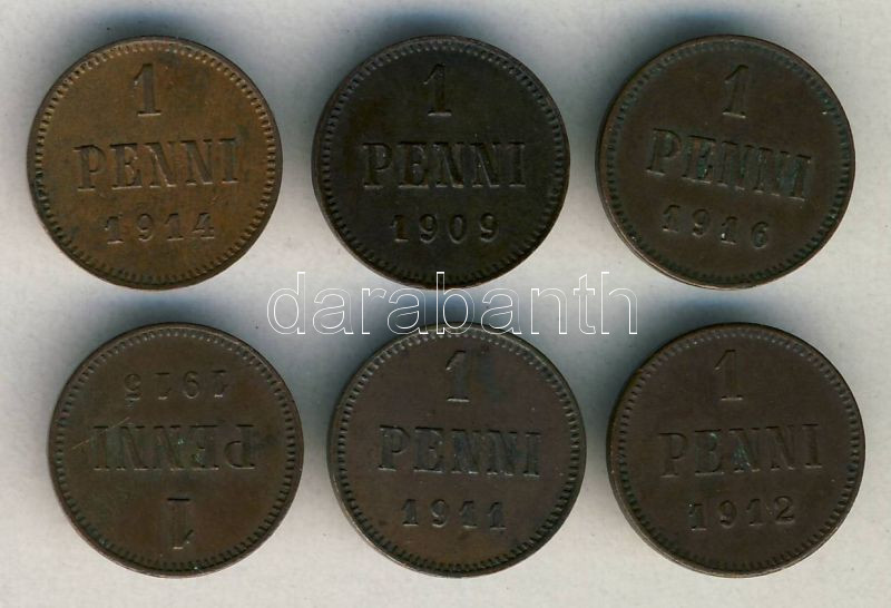 Finnország/orosz megszállás 1909-1916. 1p (6x) mindegyik különböző évs... https://www.darabanth.com/de/144-Fernauktion/144.0/Numismatik/Auslandische-Munzen~1000093/Finnorszagorosz-megszallas-1909-1916-1p-6x-mindegyik-kulonbozo-evszamu-T2-2-~II428519