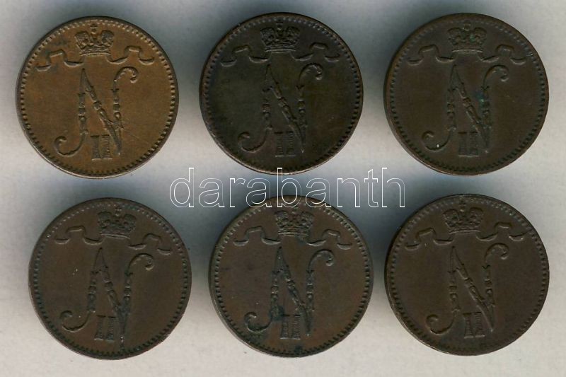 Beschreibung: Finnország/orosz megszállás 1909-1916. 1p (6x) mindegyik különböző évszámú T:2,2-