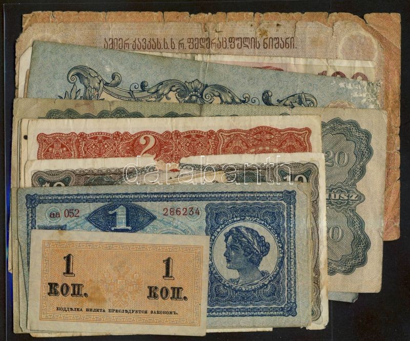Beschreibung: Kis vegyes tétel, magyar és külföldi bankjegyek, fémpénzek, köztük érdekes darabok T:vegyes