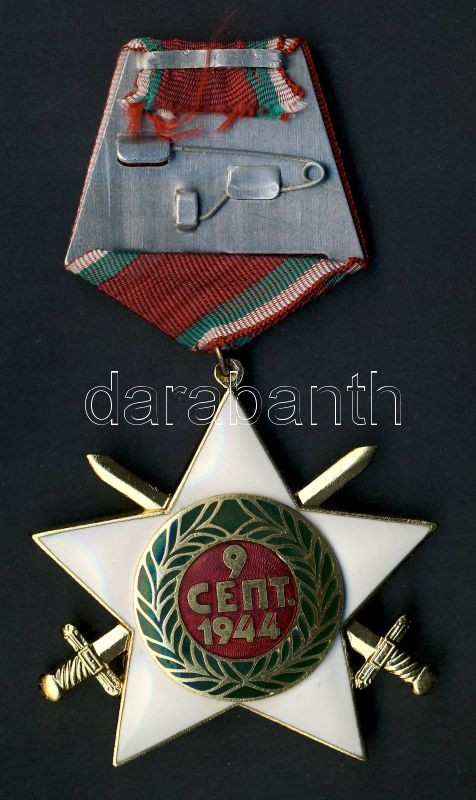Bulgária "1944. szeptember 9. Érdemrend" I. osztálya kardokkal mellszalaggal T:2 / Bulgaria "Order 9 September 1944" 1st class with swords and band T:2