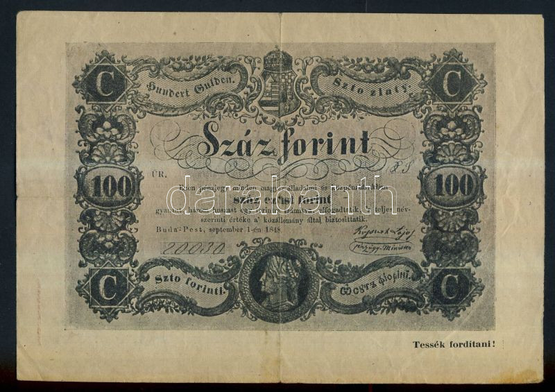 1848. 100Ft "Kossuth bankó" imitációja - Révay testvérek 1888-ból szár... https://www.darabanth.com/de/144-Fernauktion/144.0/Numismatik/Numismatische-Dokumente-und-Briefe~1000084/1848-100Ft-Kossuth-banko-imitacioja--Revay-testverek-1888-bol-szarmazo-reklamja-TIII~II429704