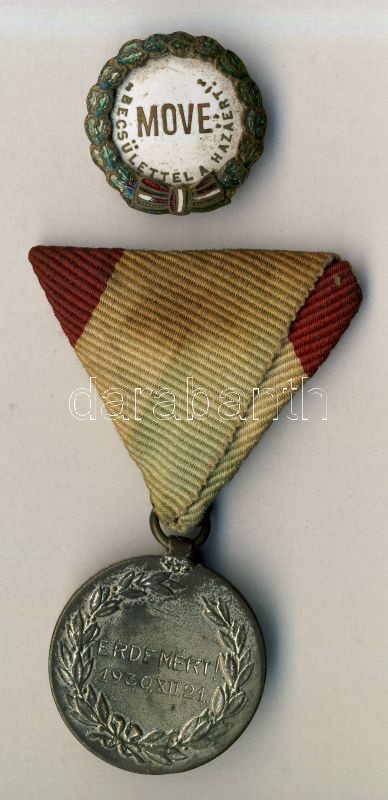 1930. MOVE ffém díjérem szalaggal + "MOVE Becsülettel a Hazáért zománc... https://www.darabanth.com/de/144-Fernauktion/144.0/Numismatik/Ungarische-Edelmetall-Gedenkmunzen-und-Plaketten~1000099/1930-MOVE-ffem-dijerem-szalaggal-plus-MOVE-Becsulettel-a-Hazaert-zomancozott-kituzo-letort~II429511