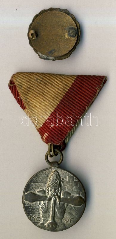Beschreibung: 1930. MOVE ffém díjérem szalaggal + "MOVE Becsülettel a Hazáért zománcozott kitűző (letört a csat, zománc sérült kicsit) T:2