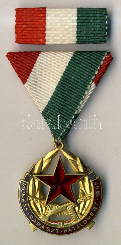 1957. "Munkás Paraszt Hatalomért" kitűntetés mellszalaggal, szalagsávv... https://www.darabanth.com/de/144-Fernauktion/144.0/Numismatik/Ungarische-Edelmetall-Gedenkmunzen-und-Plaketten~1000099/1957-Munkas-Paraszt-Hatalomert-kituntetes-mellszalaggal-szalagsavval-es-eredeti-disztokba~II430667