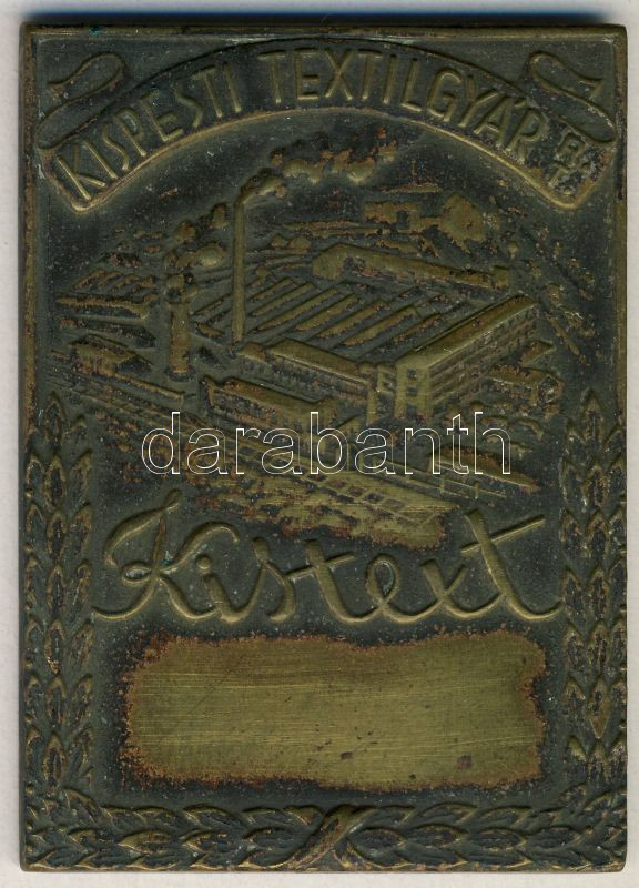 Beschreibung: DN "Kispesti Textilgyár Rt.-Kistext" szögletes emlékérem T:2