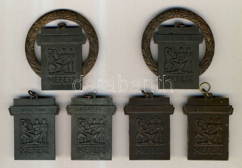 Beschreibung: cca 1949-50. "MEFESZ" Atlétika díjérmek I.,II.,III. helyezésért, összesen 6db T:2,3 (kettőről a koszorú hiányzik