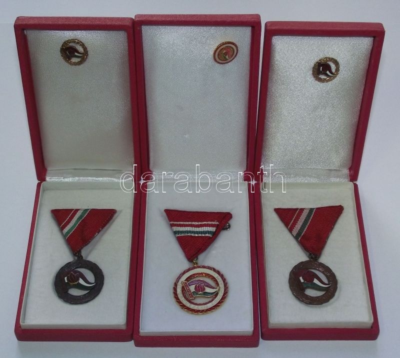 cca 1980. 2db "Előre" Kiváló Úttörővezető kitüntetés miniatűrrel eredeti dísztokban + "Úttörővezető Érdemérem mellszalaggal miniatűrrel eredeti dísztokban T:2+,2