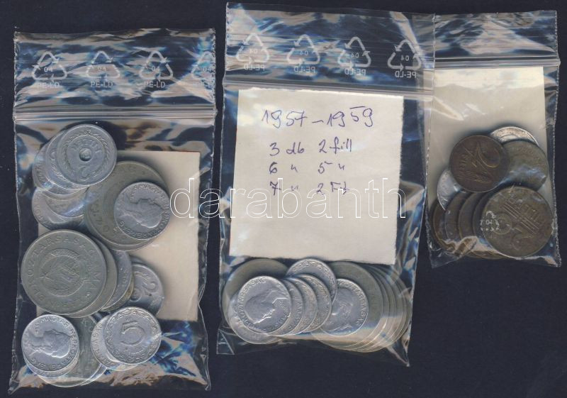 Beschreibung: 1946-50. 2f (2x) + 5f 83x) + 10f (2x) + 20f (4x) + 1950-56. 2f (7x) + 5f (10x) + 20f + 50f + 1Ft (2x)+ + 2Ft (4x) + 1957-1959. 2f (3x) + 5f (6x) + 2Ft (7x) T:2,3 összesen 52db