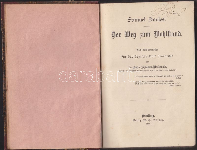 1889 Samuel Smiles: Der Weg zum Wohlstand, Heidelberg, Georg Weiß, jó ... https://www.darabanth.com/de/145-Fernauktion/145.0/Andere-Sammelgebiete/Bucher-Andere-Sprachen~220/1889-Samuel-Smiles-Der-Weg-zum-Wohlstand-Heidelberg-Georg-WeiC39F-jo-allapotban~II436496