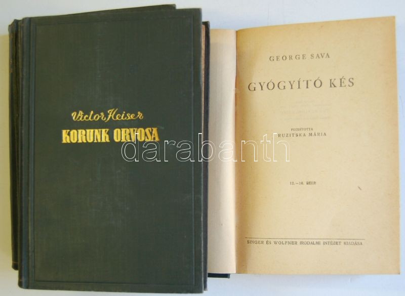 3 orvosi regény: George Sava: Gyógyító kés, Korunk orvosa, Victor Heiser: Egy orvos bejárja a világot, Bp., Singer és Wolfner, aranyozott egészvászon kötésben szép állapotban