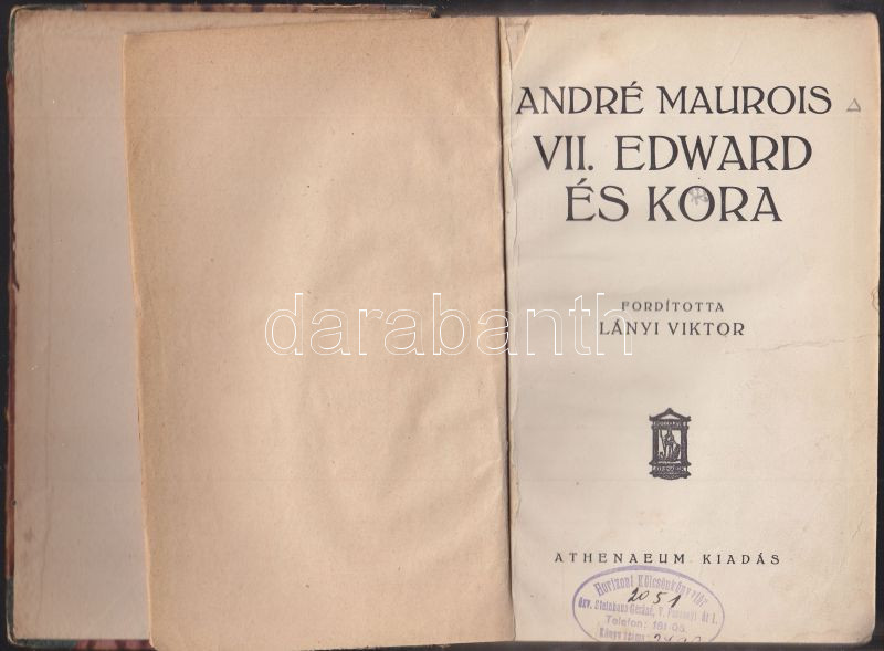 André Maurois: VII. Edward és kora, Antheneum Kiadó, fordította Lányi ... https://www.darabanth.com/de/145-Fernauktion/145.0/Andere-Sammelgebiete/Bucher-Sonstige-Raritaten~221/Andre-Maurois-VII-Edward-es-kora-Antheneum-Kiado-forditotta-Lanyi-Viktor-viseltes-allapot~II434882