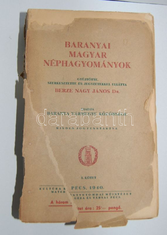 Berze Nagy János: Baranyai magyar néphagyományok I., Pécs, 1940. Kultú... https://www.darabanth.com/de/145-Fernauktion/145.0/Andere-Sammelgebiete/Bucher-Sonstige-Raritaten~221/Berze-Nagy-Janos-Baranyai-magyar-nephagyomanyok-I-Pecs-1940-Kultura-ny-802p-Felvagatlan~II433348