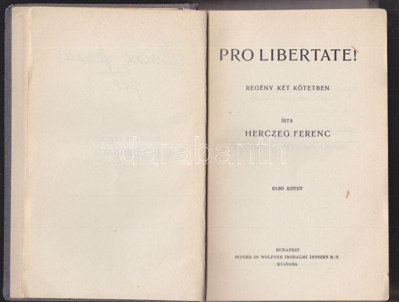 Beschreibung: Herczeg Ferenc: Pro Libertate I. kötet dedikált!, Singer és Wolfner, kissé laza félvászon kötésben