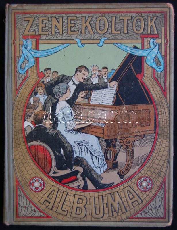 Beschreibung: Zeneköltők albuma - operettek szalonpiécek... kuplék gyűjteménye, festett, aranyozott egészvászon kötésben, 206p.