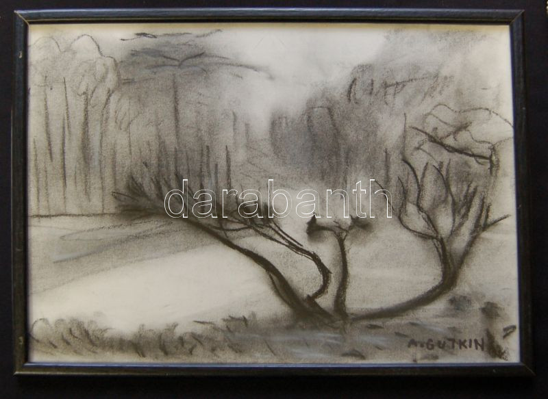 A. Gutkin jelzéssel: Kopár táj, szén-papír, jelzett, keretben https://www.darabanth.com/de/145-Fernauktion/145.0/Andere-Sammelgebiete/Flohmarkt~224/A-Gutkin-jelzessel-Kopar-taj-szen-papir-jelzett-keretben~II427048