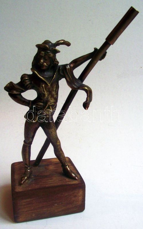 Beschreibung: Kurucot ábrázoló kis réz szobor fa talapzaton 14cm magas