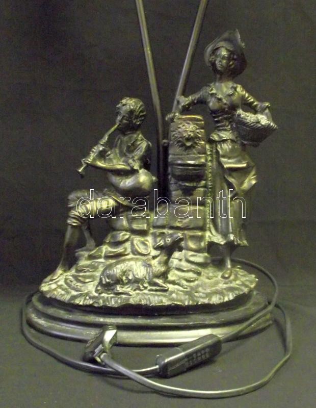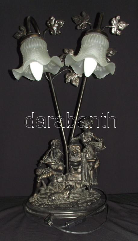 Beschreibung: Nagyméretű, antikolt, bronz hatású faragott faszobor-lámpa / Carved wood statue - lamp 60 cm