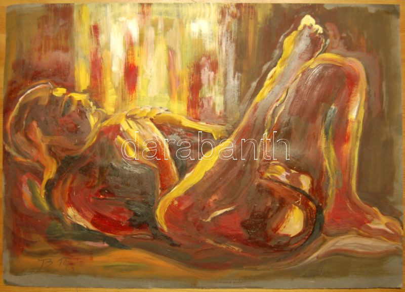Beschreibung: B.R. jelzéssel: Akt papír-olaj, jelzett, 70x50 cm