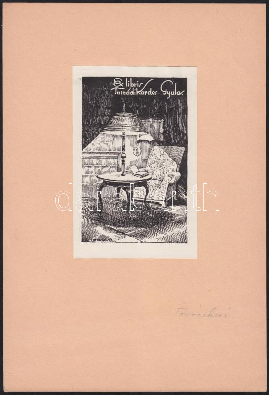 Beschreibung: Toroczkai Oszvald (1884-1951): Ex libris fametszet-papír, jelzett 8x12 cm