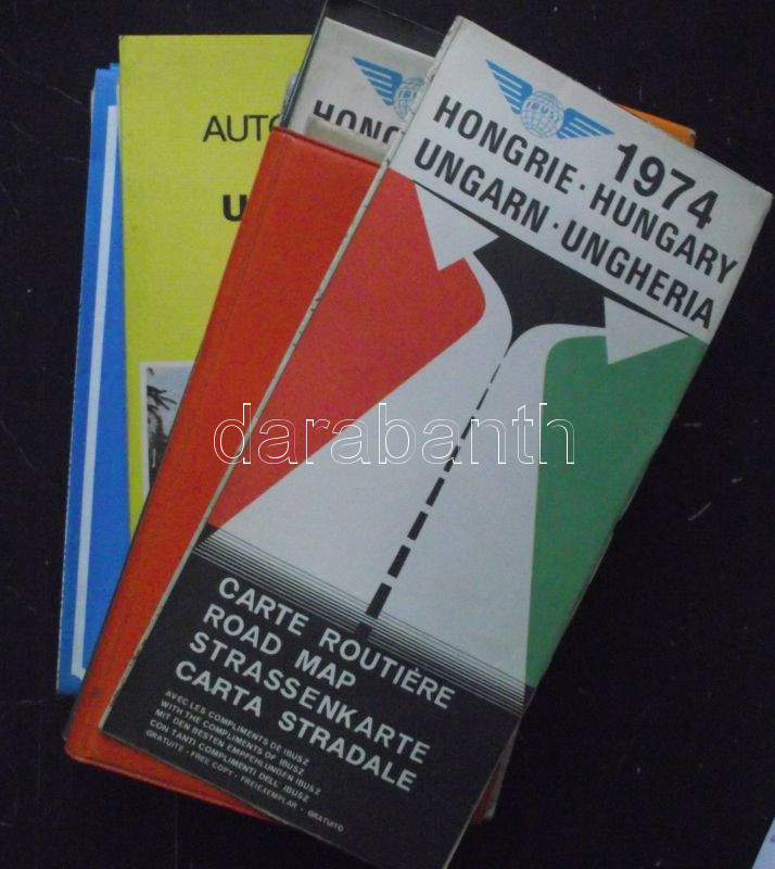 Beschreibung: Nagyméretű 4 darabból álló Magyarország térkép (1:300 000) 120x200 cm + 16 db magyar és külföldi várostérkép