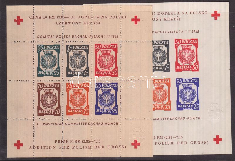 Beschreibung: 1945 Dachau lengyel vöröskeresztes segélybélyeg - blokkok vágott és fogazott